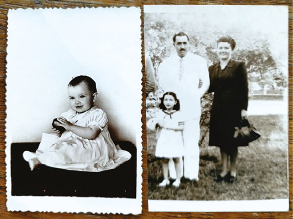 Fig. 1. Luisa M. Anzótegui en su primera infancia, hacia finales de 1944. En la imagen de la derecha, aparece en compañía de sus padres, en una escena capturada entre 1948 y 1949.