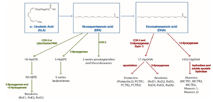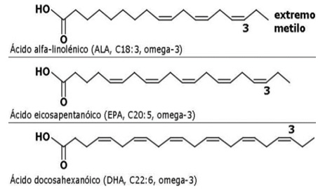 ALA= ácido alfa-linolénico (18:3n-3), EPA= ácido eicosapentaenoico (20:5n-3), DHA= ácido docosahexaenoico (22:6n-3).